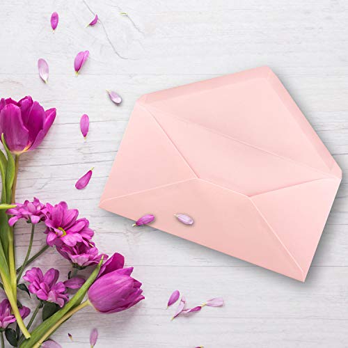 Papieren enveloppen Kleur: roze – Gewicht: 120 g/m² – Formaat: DIN lang 110 x 220 mm (11 x 22 cm) – Met natte lijm en rubber coating, zonder venster