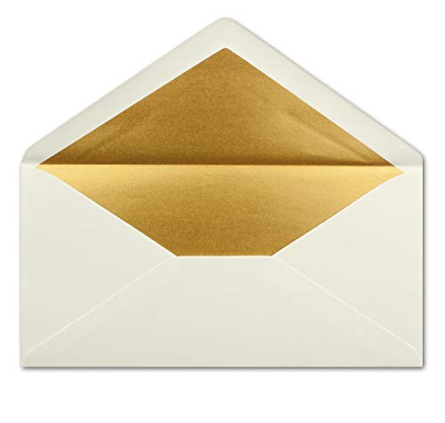 150 enveloppen DIN lang – natuurlijk wit met goud-metallic voering – 110 x 220 mm – nat lijmen – feestelijke enveloppen…