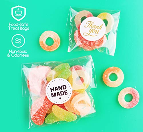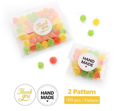 200 stuks transparante cellofaanzakjes met 200 stuks stickers Thank you / Handgemaakt. Deze zakjes zijn 10 x 15 cm en 7 x 10 cm, elk 100 stuks (niet flap en kunnen niet zelfklevend)