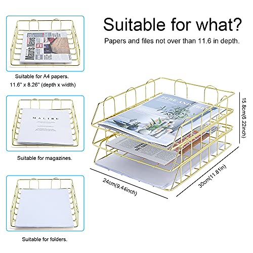 Baffect 3-laags stapelbare A4-archiefbakken houder, briefarchiefbladen metalen briefpapierlade bestandsorganisator…