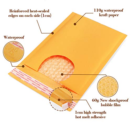 ⭐ Gele krachtige luchtkussen-mail: 60 stuks Bubble Mailers luchtkussenzakken A5 (bruikbare afmetingen 16 x 23 cm), het is mogelijk om voorwerpen in A5-formaat in te voegen. Het ondoorzichtige uiterlijk en de dikkere luchtkussens kunnen de veiligheid en privacy van het product goed beschermen. Deze gevoerde enveloppen zijn lichte enveloppen die je verzendkosten niet verhogen.