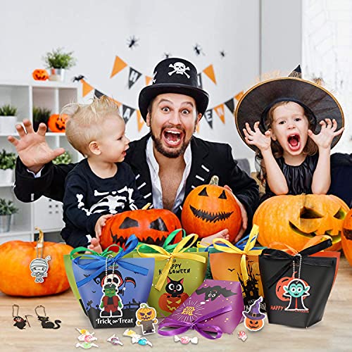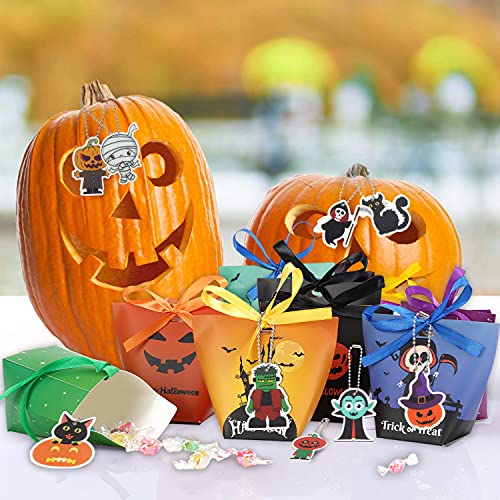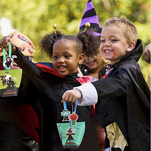 Kwaliteitsmateriaal: elke Halloween-party gunst geschenktas is gemaakt van niet-giftig duurzaam papier, opvouwbaar en lichtgewicht, dat het meerdere keren kan gebruiken. Aan de bovenkant van de Halloween-snoepzak bevindt zich een handvatgat, die met het bijgevoegde lint kan worden vastgeknoopt voor gemakkelijk dragen. Geschikt voor kinderen om te trucken of te behandelen, of om zelf snoep te laden.