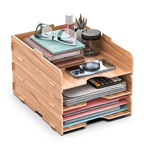 Specificaties: Lesfit Stapelbare Houten Brievenlade Organiser, Houten Bureaubestand/Document/A4 Papierrek, 3 Tier
