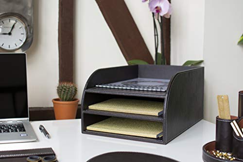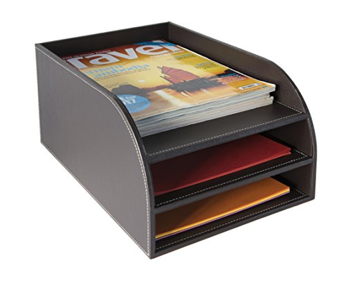 Deze prachtige 3-daagse brievenbak van bruin kunstleer van Osco is een perfecte en elegante bureauoplossing voor het opbergen van al je documenten en tijdschriften.
