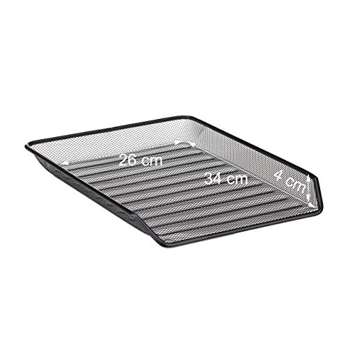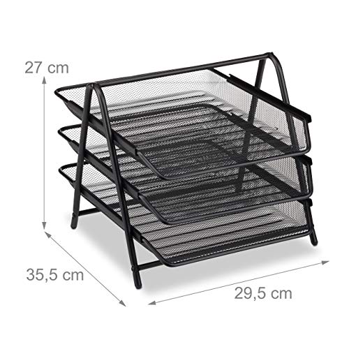 Specificaties: Relaxdays Documentenhouder van metaal, brievenbakje, 3 vakken, mesh-design, bureaublad voor A4-documenten, zwart, 35,5 x…