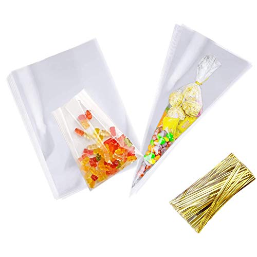 ★ De set bevat: 100 conische zakken + 100 rechthoekige zakken + 200 kabelbinders. Een grote hoeveelheid kan je helpen om popcorn, geschenken, snoep of chocolade gemakkelijk in te pakken